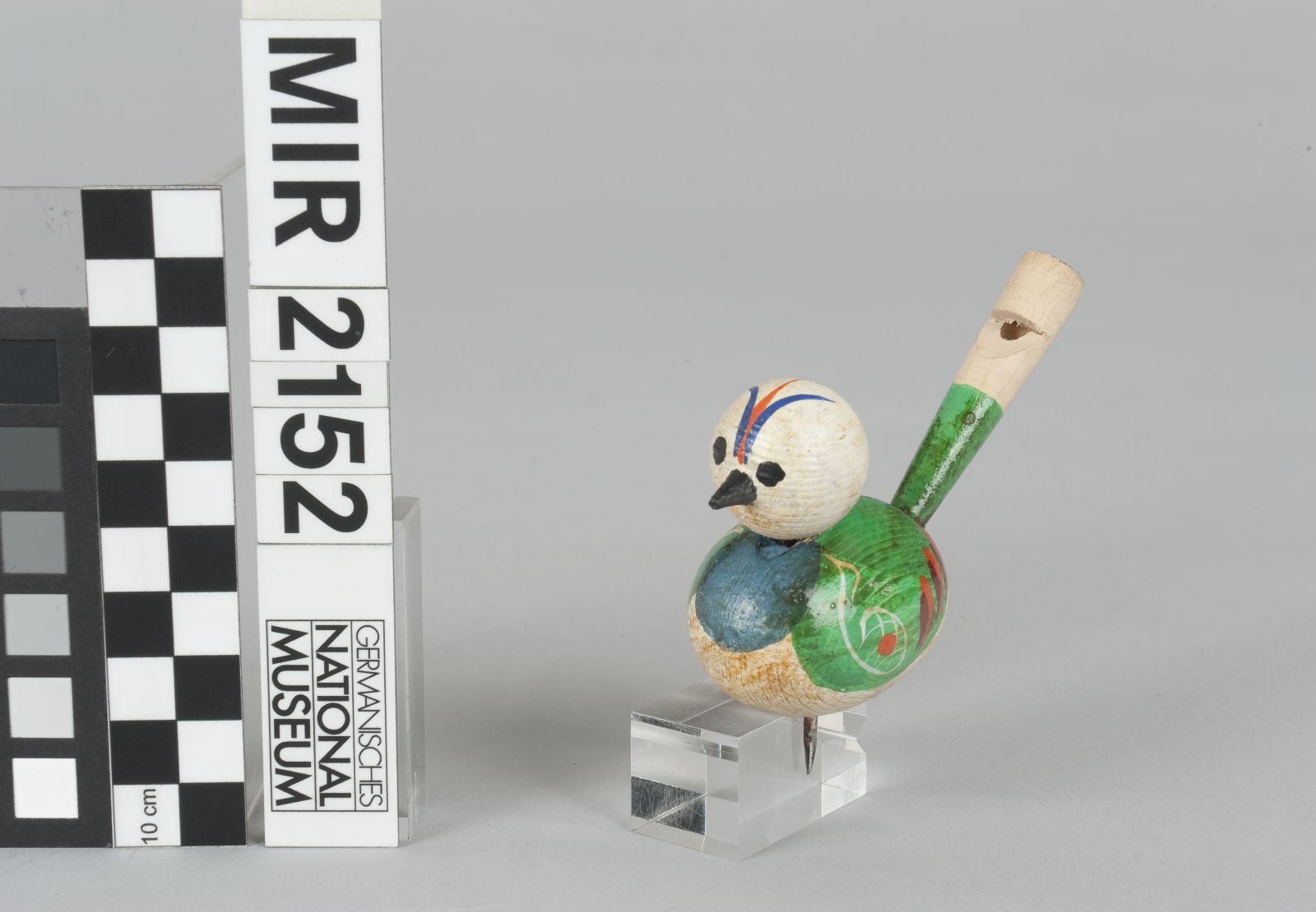 Laubholz, gedrechselt, gebohrt und farbig gefasst