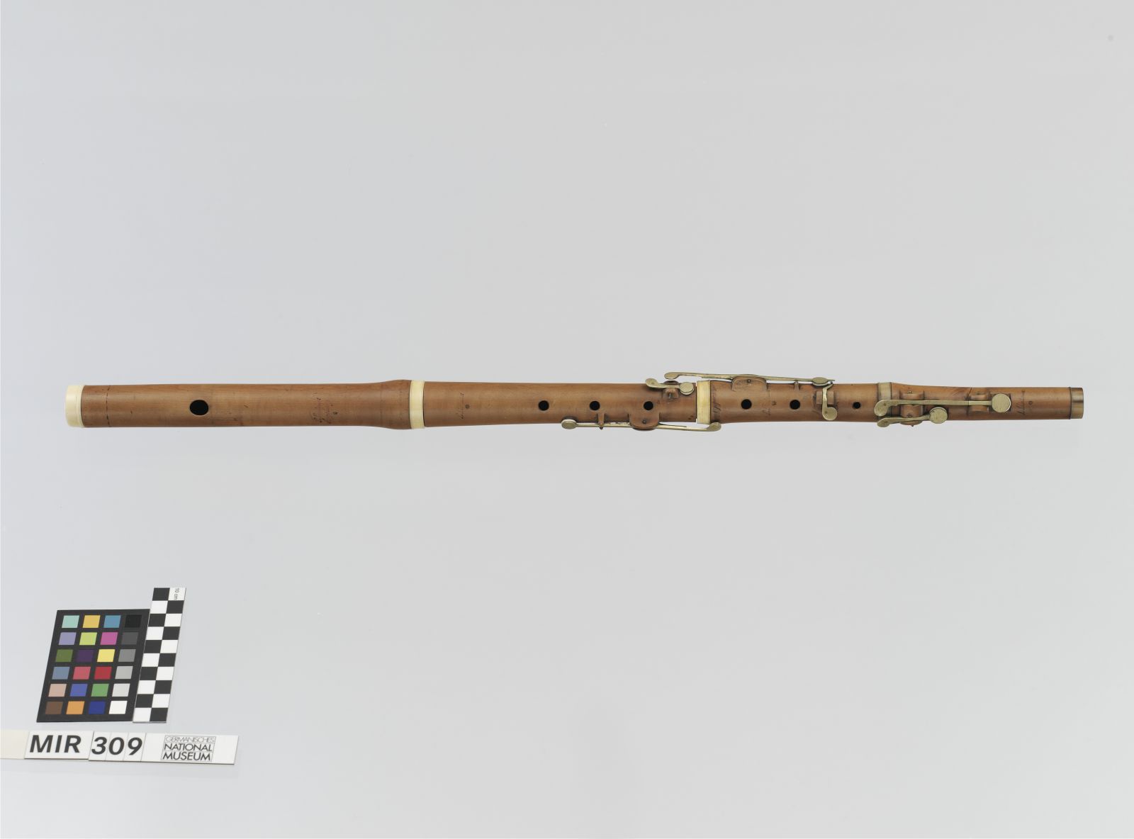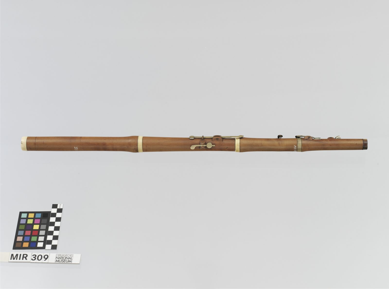 Korpus: Buchsbaum; untere Unterrohrzwinge: Horn; Kappe und restliche Zwingen: Elfenbein; Klappen: Messing