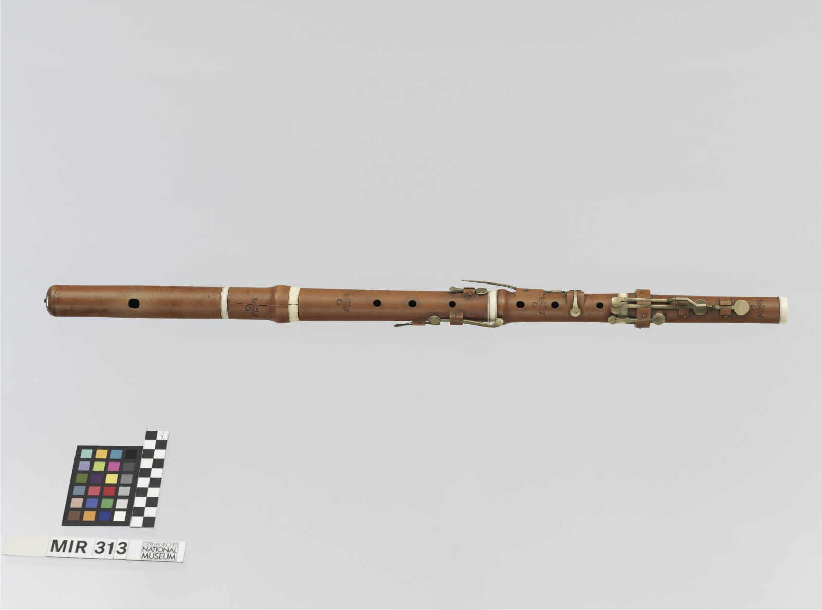 Korpus und Kappe: Buchsbaum; Zwingen: Elfenbein; Klappen: Messing