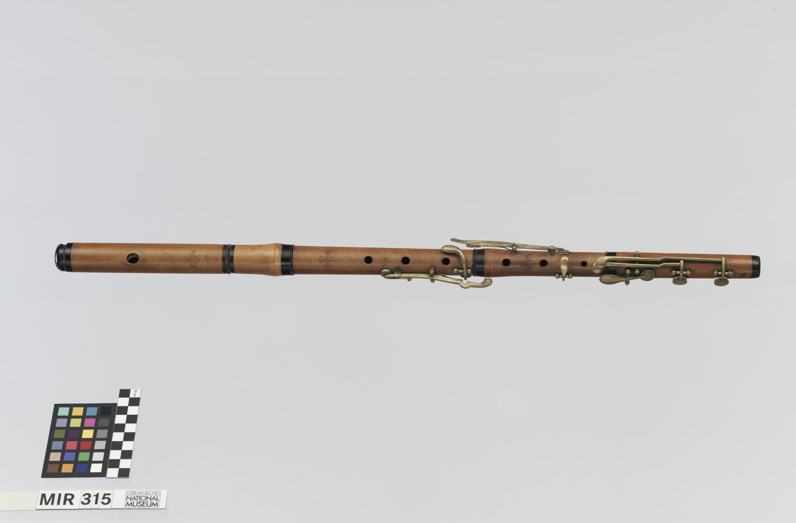 Korpus: geflammter Buchsbaum; Kappe und Zwingen: Horn; Klappen: Messing