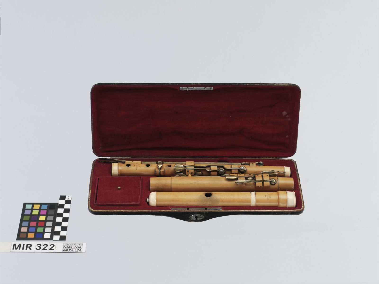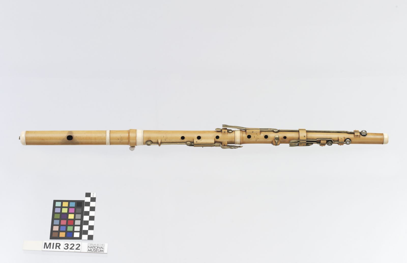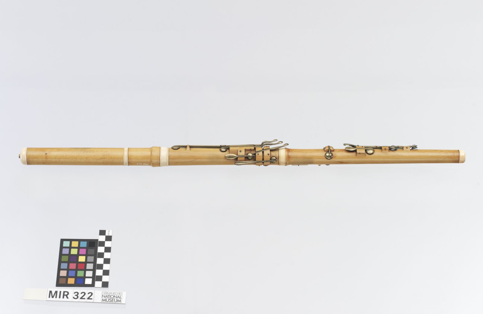 Korpus: Buchsbaum; Kappe und Zwingen: Elfenbein; Klappen und Klappenführungen: Messing; Klappenpolster von cis1 abwärts: Blei; Tonlochfutter für diese: Messing.