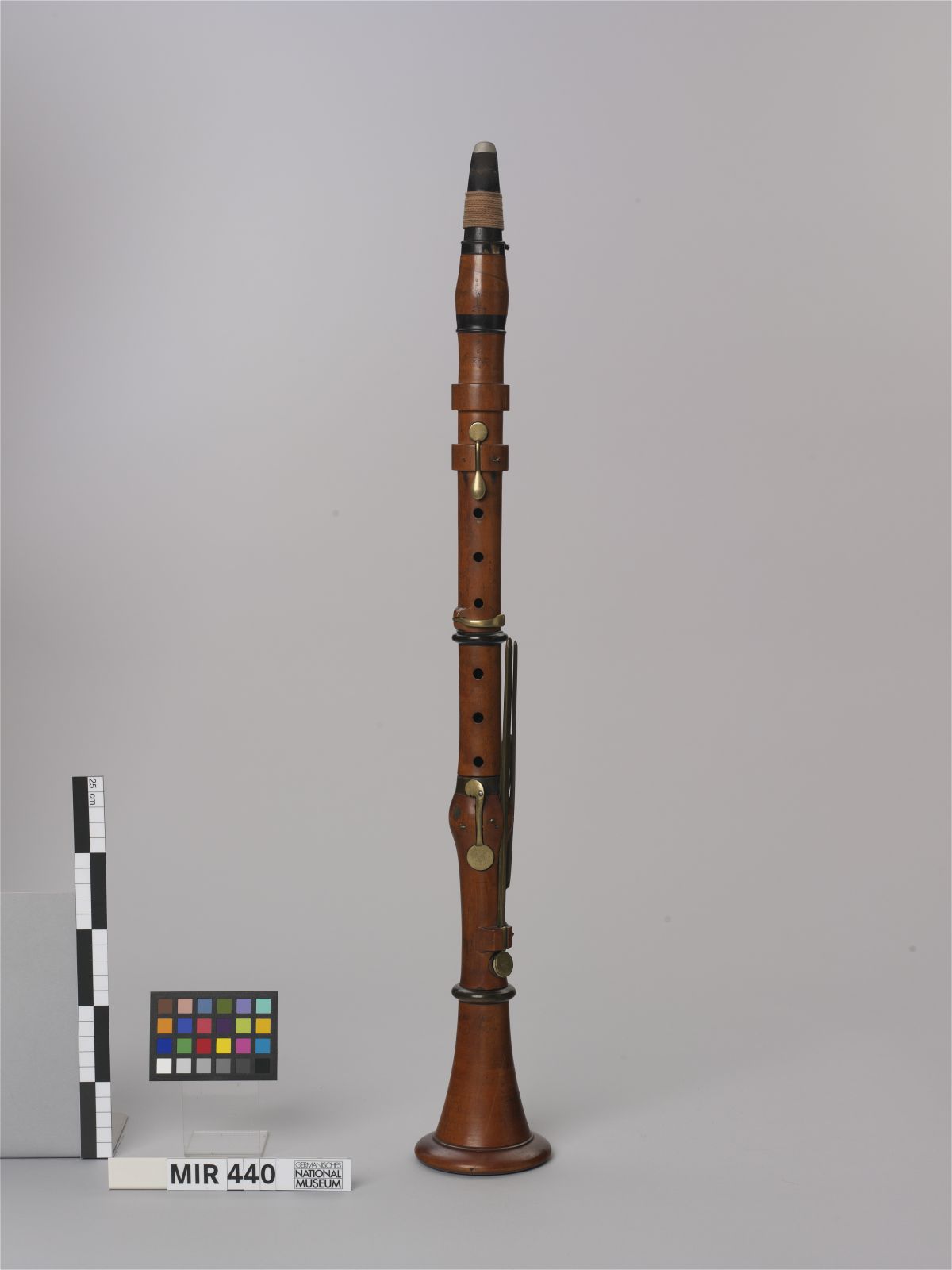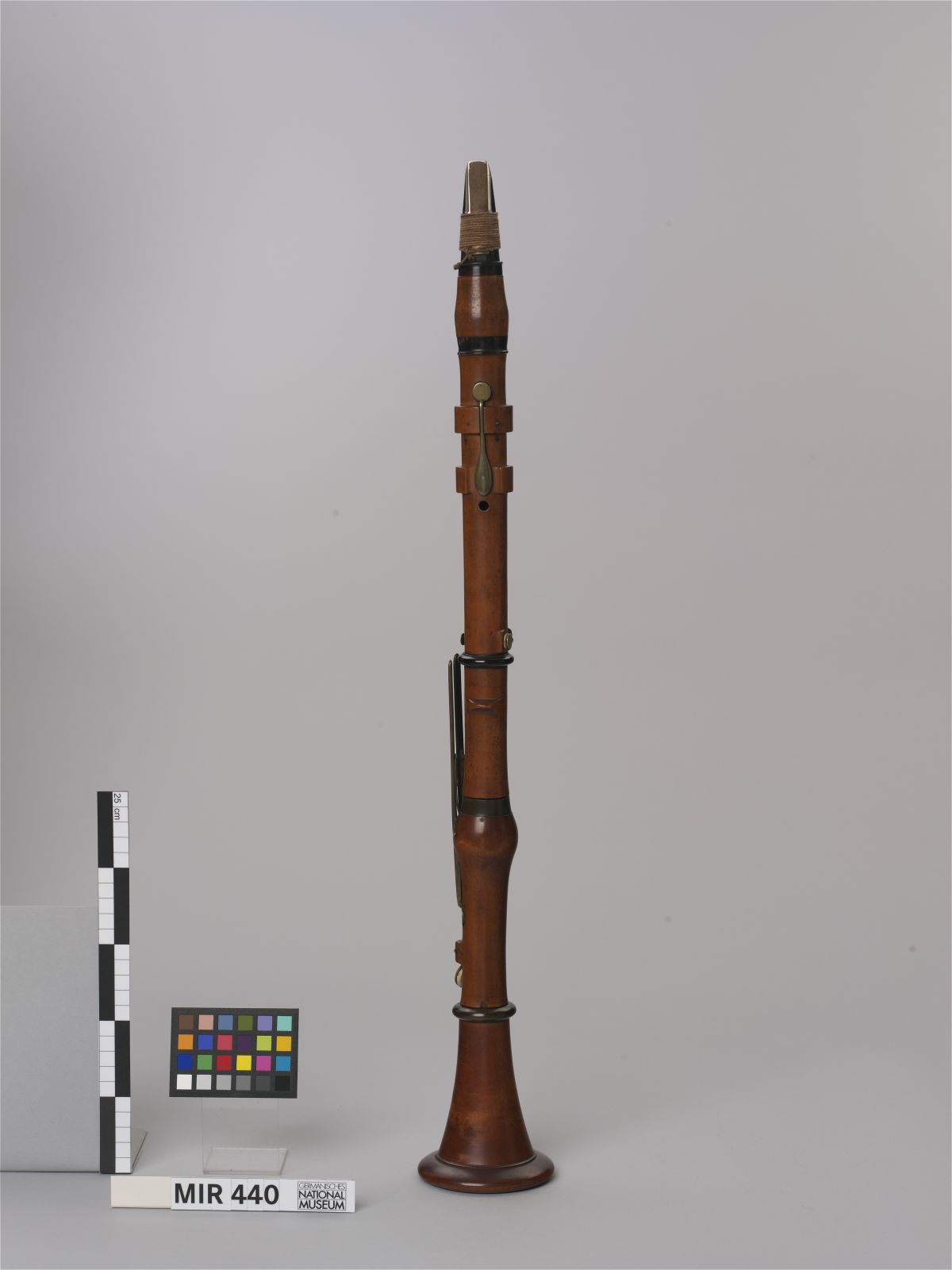 Schnabel: dunkles exotisches Hartholz und Neusilber; Korpus: Buchsbaum (?), dunkel behandelt; Klappen: Messing