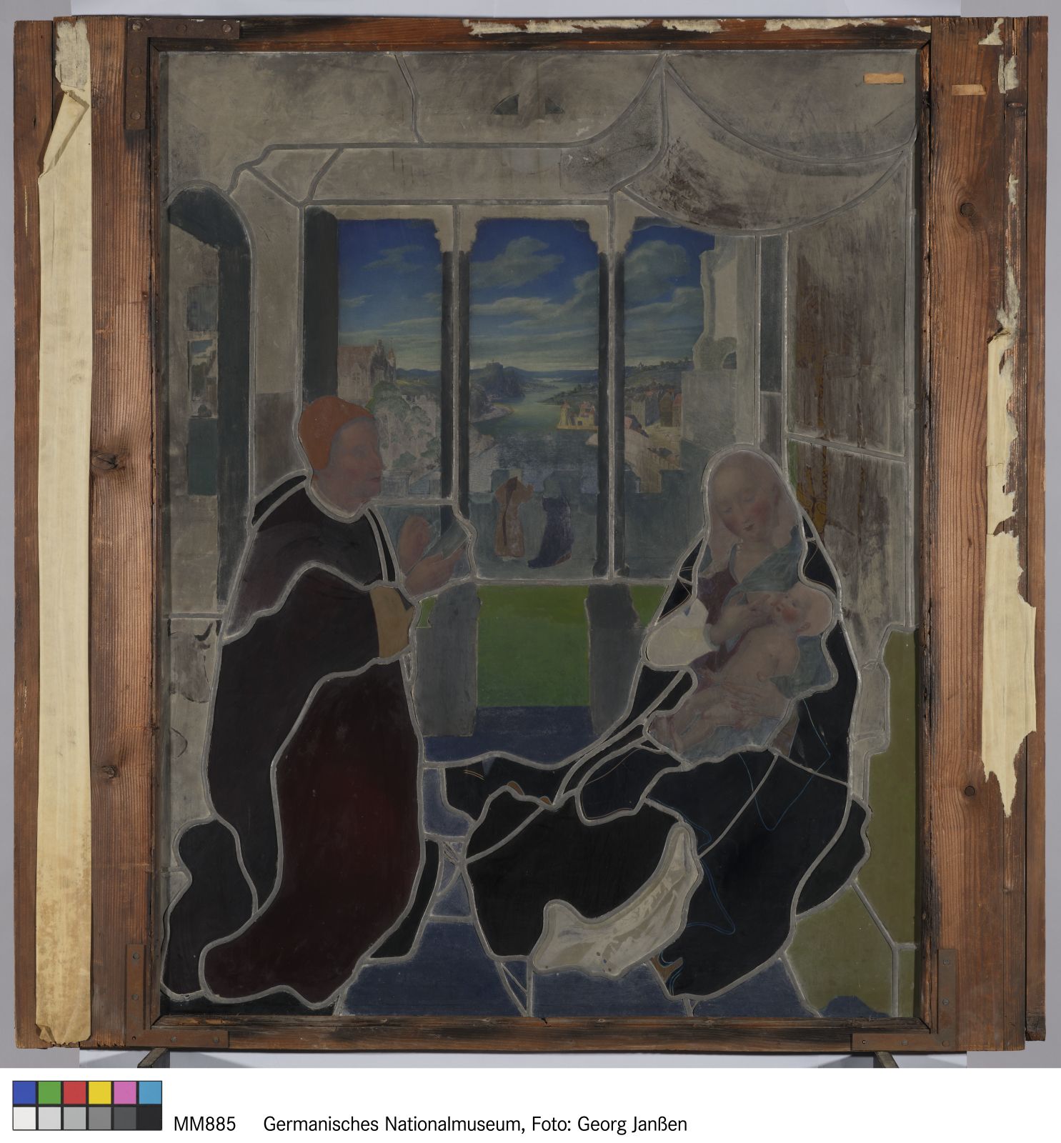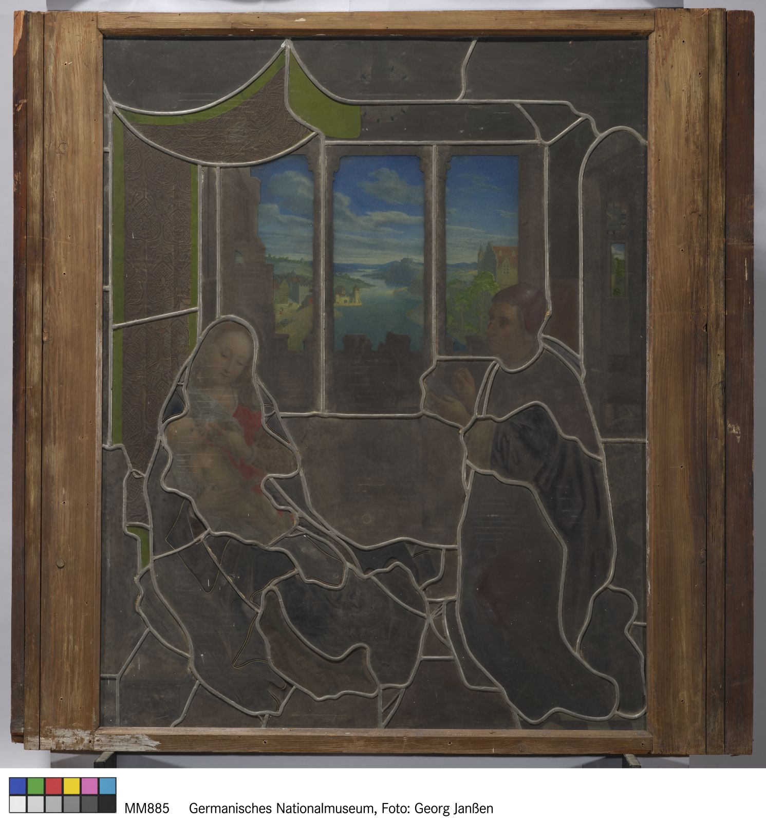 Weiß- und Farbglas; Bamalung mit Schwarzlot, Silberlot und Glasmalereifarbe