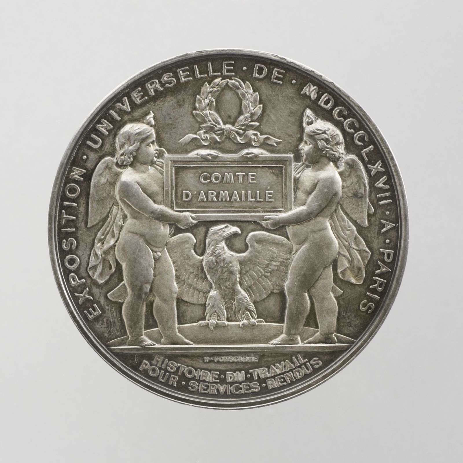 Paris, Weltausstellung, Offizielle Erinnerungsmedaille "Pour Services Rendus Histoire du Travail" für den Comte d'Armaillé 1867