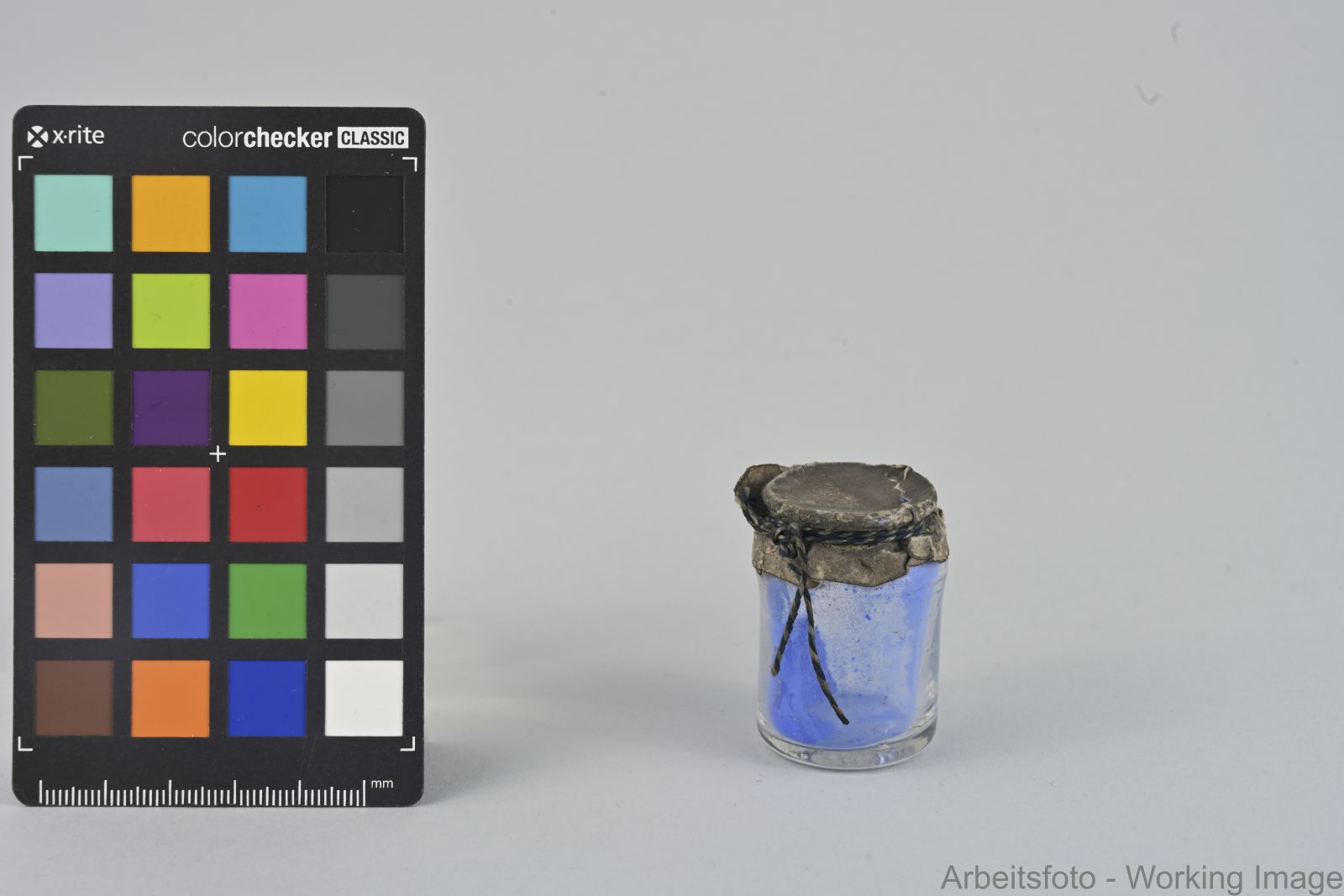 Kleine runde Enghalsflasche mit Ultramarin; Lapislazuli; Pigmentprobe