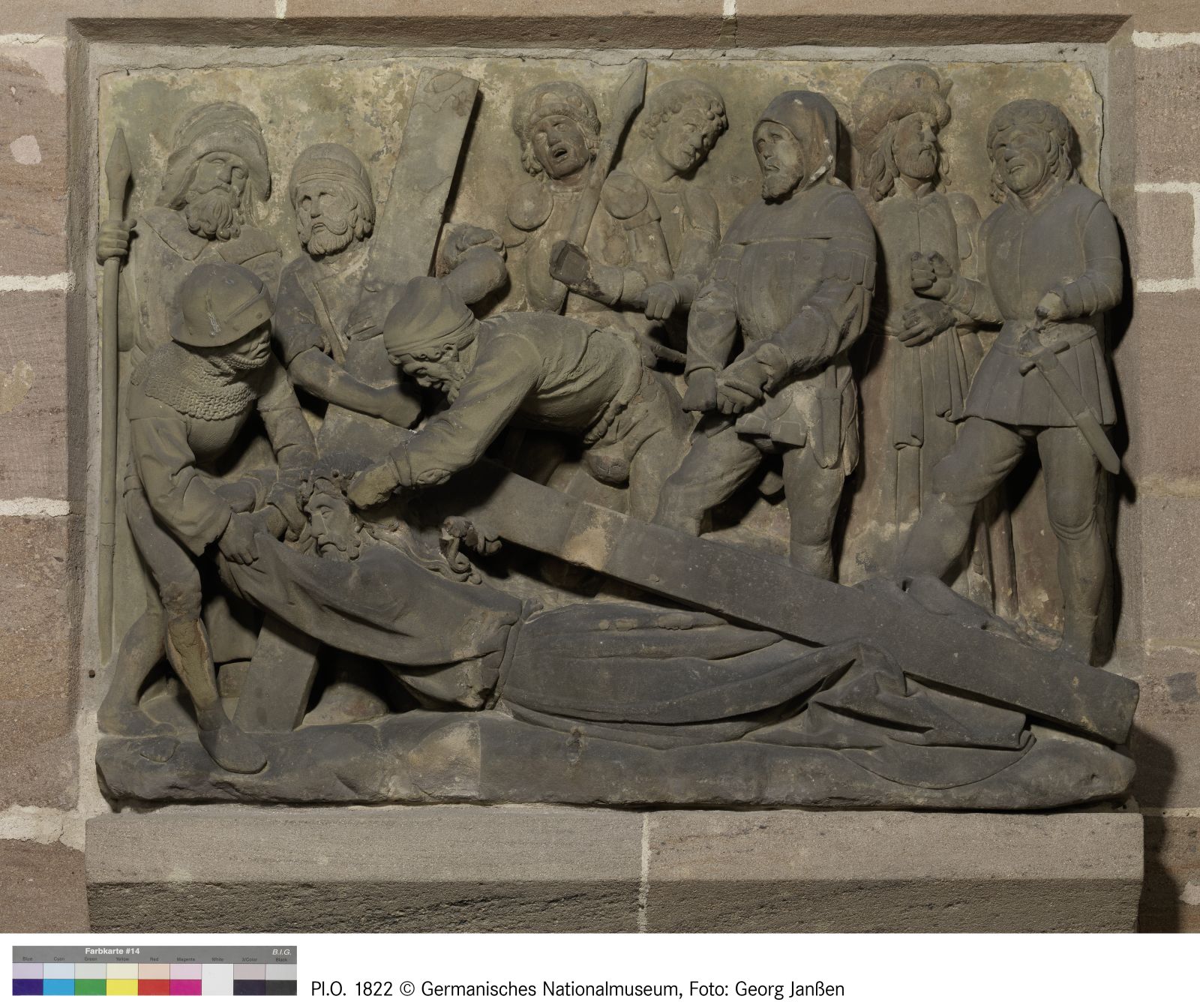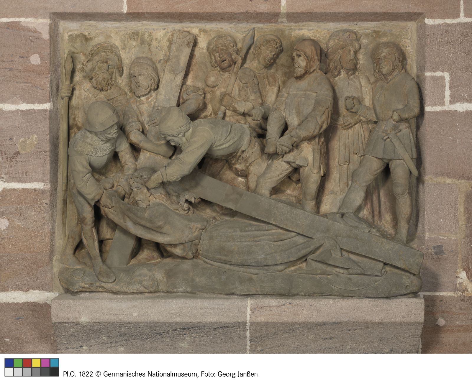 Die Szene zeigt die hohe bildhauerische Qualität Krafts, sein Talent für komplizierte Körperwendungen und Räumlichkeit. Während die hinteren Personen als flache Reliefs erscheinen, beugen sich die beiden vorderen Büttel freiplastisch aus dem Stein. Gestürzten und an ihm zerrenden Söldner verbindet eine dynamische Komposition.