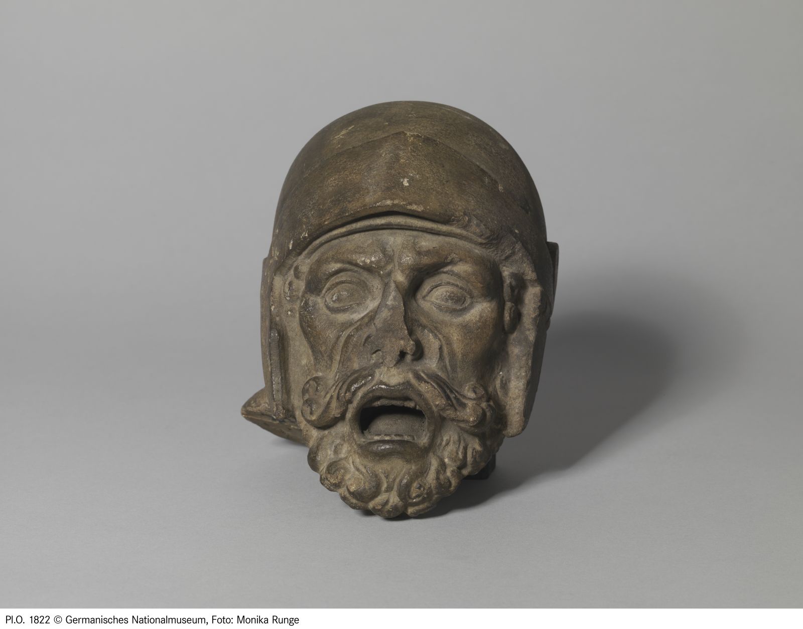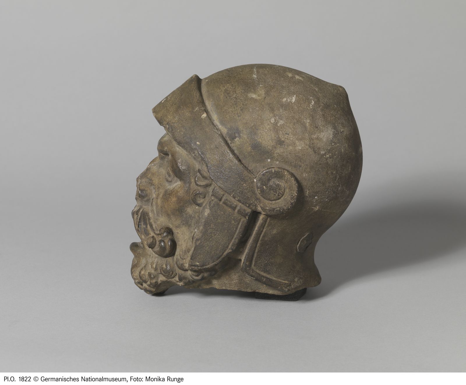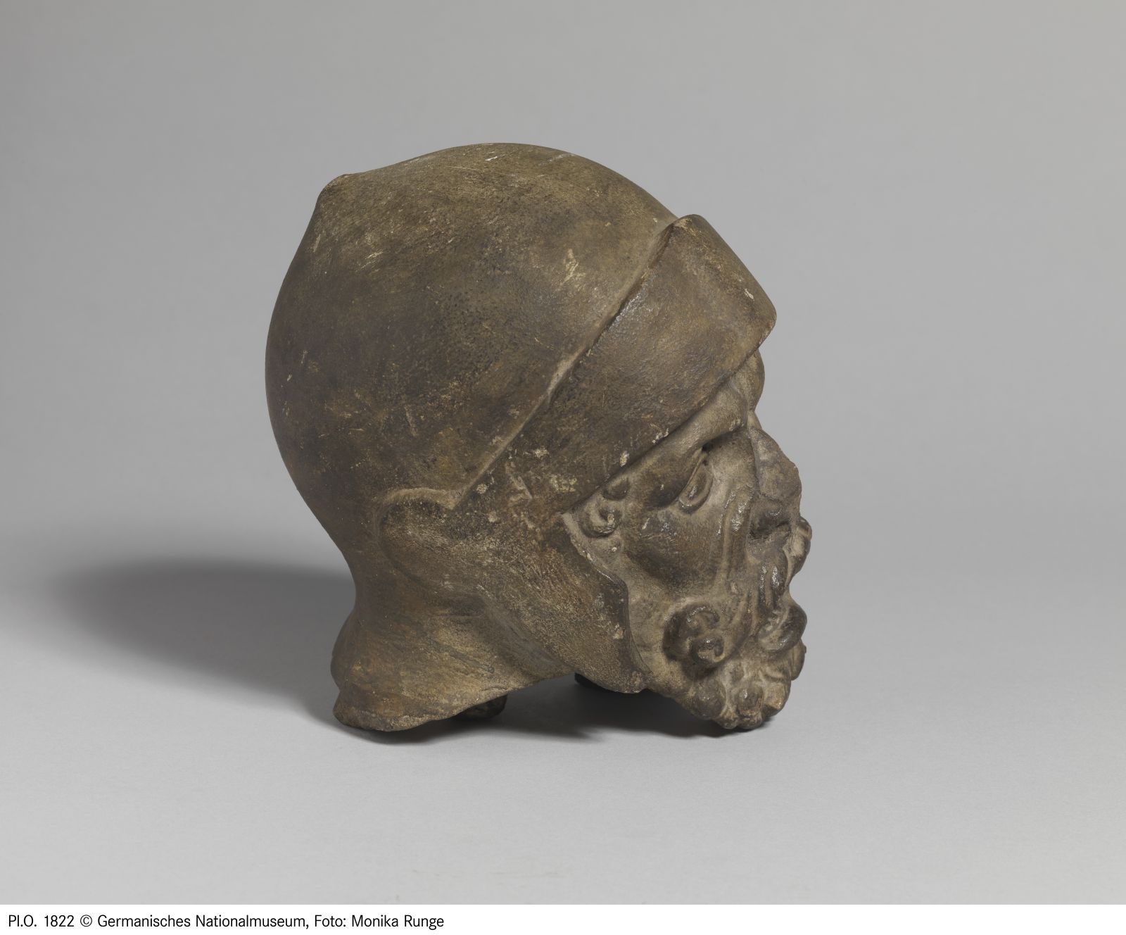 Kopf eines Büttels. Die Ergänzung entstand im Zuge der Restaurierung von 1662. Sie ersetzte den Kopf des Schergen, der Christus am Haar reißt. Das dem Körper der Figur heute angeführte Haupt ist eine Ergänzung von 1854.