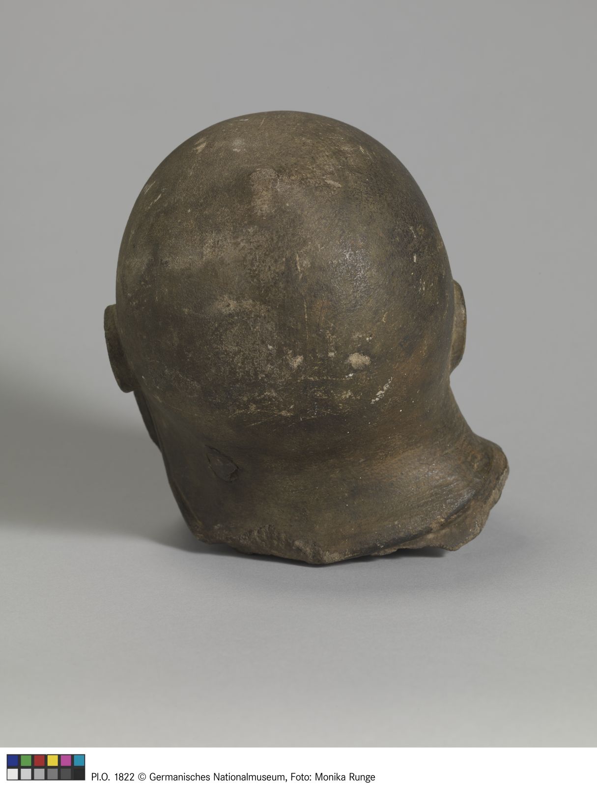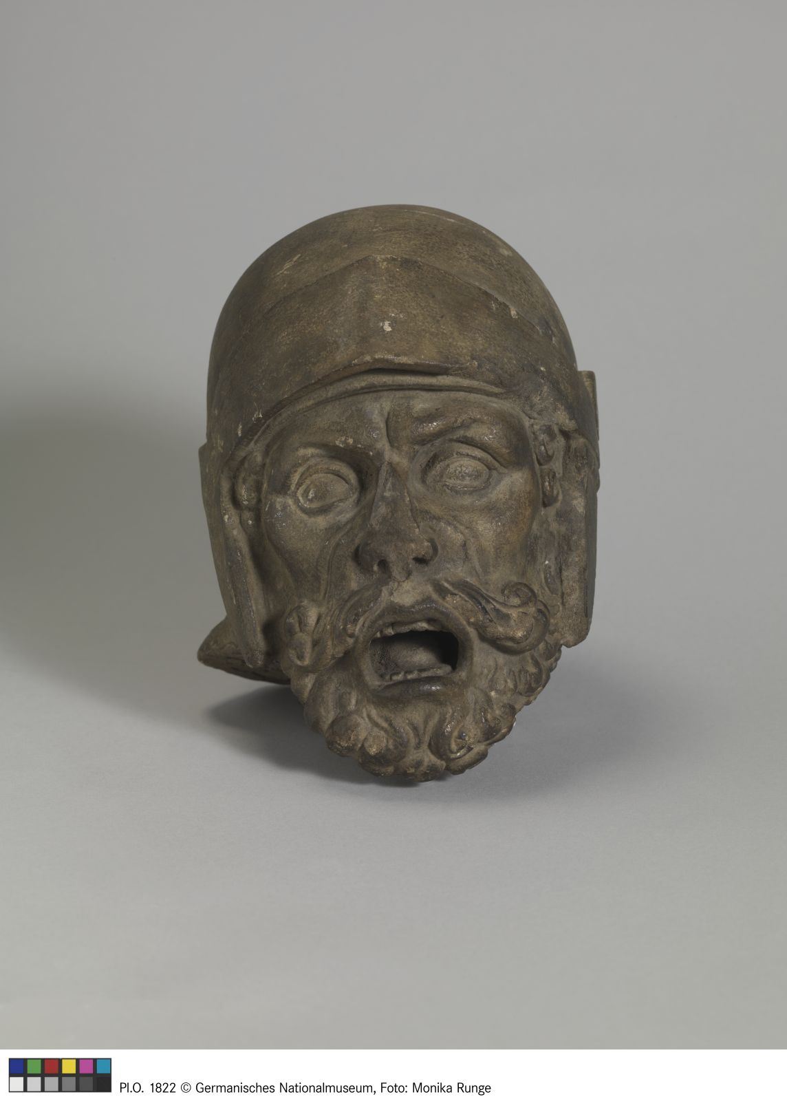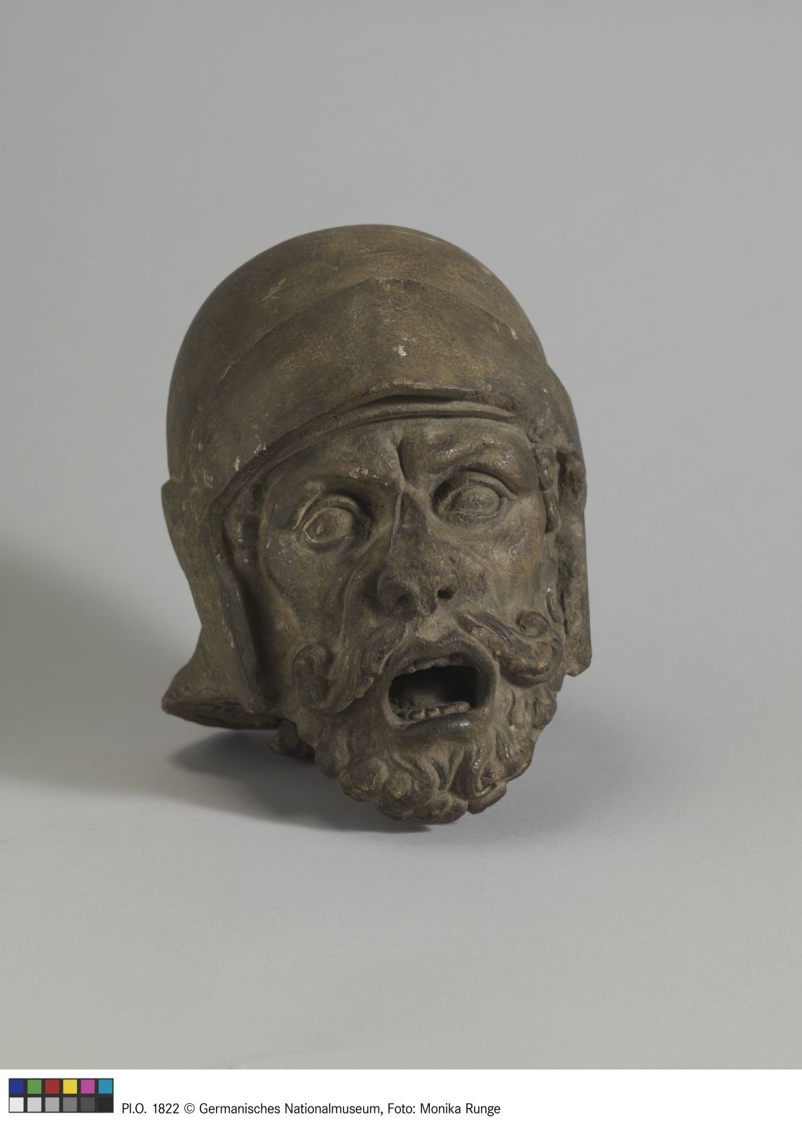 Kopf eines Büttels. Die Ergänzung entstand im Zuge der Restaurierung von 1662. Sie ersetzte den Kopf des Schergen, der Christus am Haar reißt. Das dem Körper der Figur heute angeführte Haupt ist eine Ergänzung von 1854.