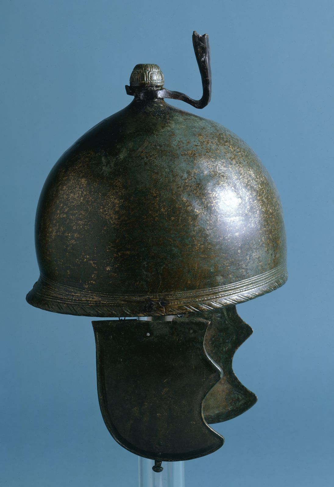 H. (ohne Wangenklappen) 22,5 cm; Dm. ca. 22,7 cm