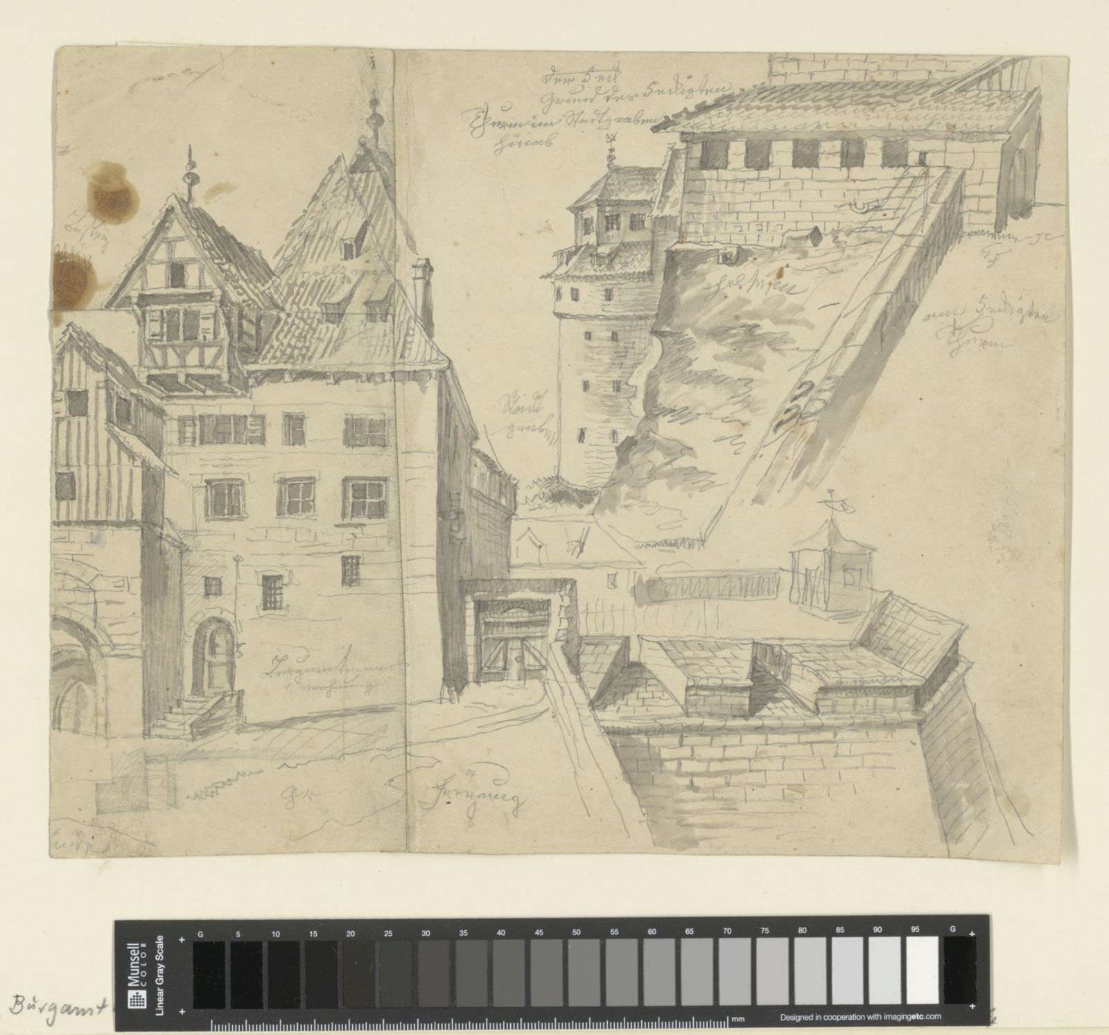 Nürnberg, Kaiserburg, Burgamtmannshaus mit Vestnertorbastei und Grabenturm