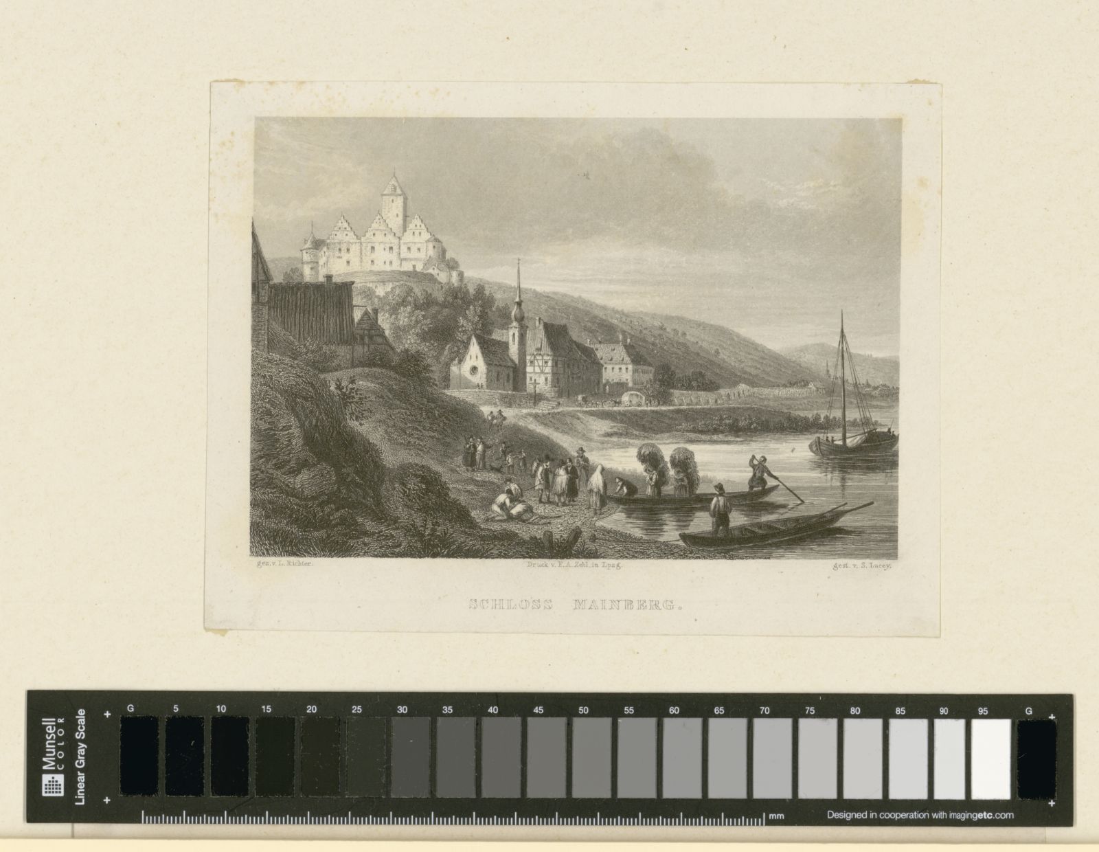 Mainberg, Ansicht mit Schloss Mainberg und St. Michael vom Mainufer aus