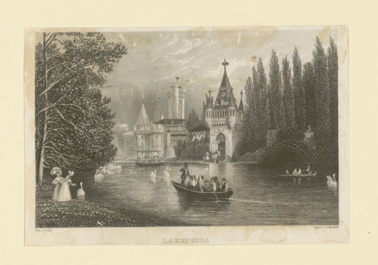 Laxenburg, Franzensburg, Ansicht vom Schlossteich aus