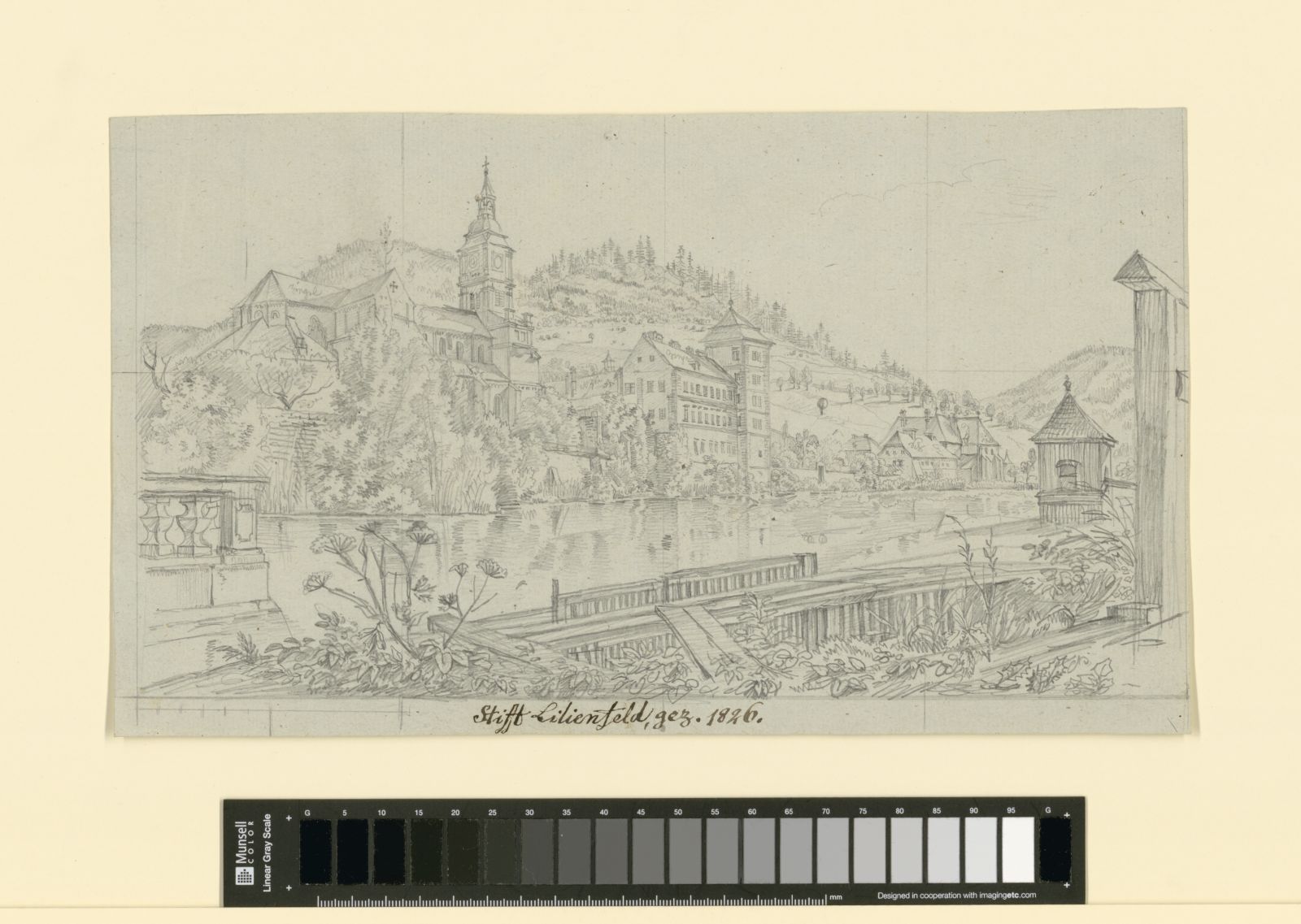 Lilienfeld, Stift Lilienfeld vom gegenüberliegenden Ufer der Traisen aus