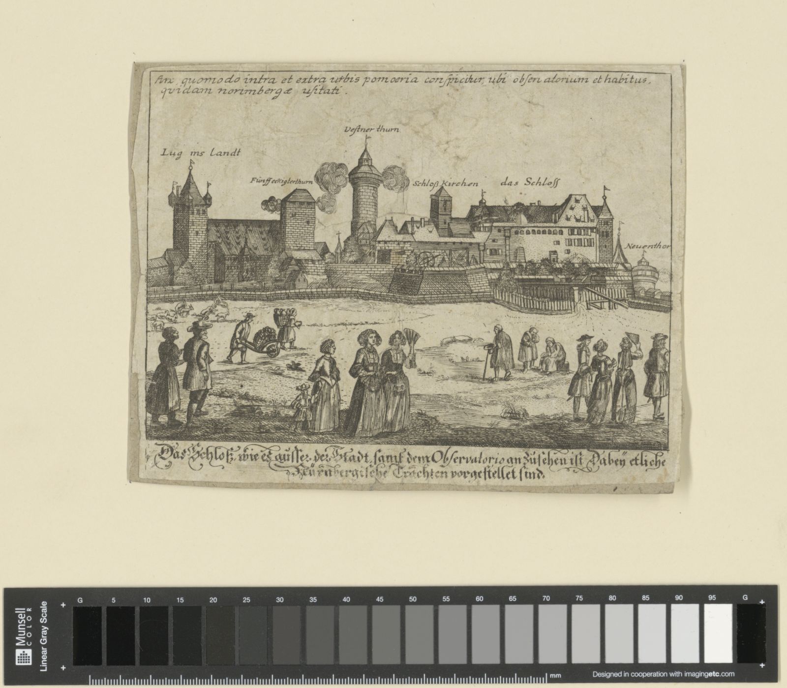 Nürnberg, Kaiserburg von Norden mit Genrefiguren