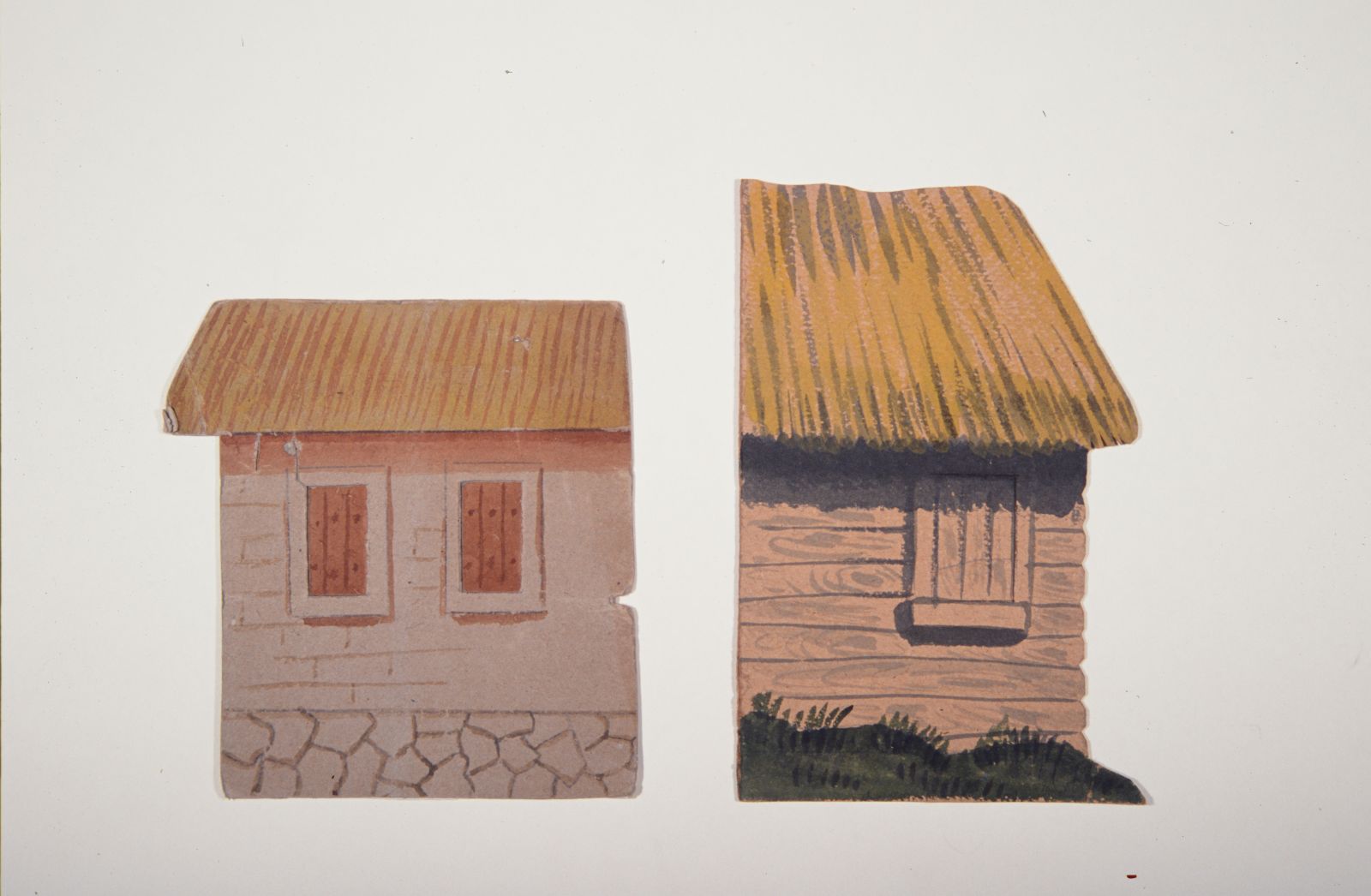 Aquarell auf Papier; auf Karton kaschiert. Holzleiste mit Nägeln befestigt.