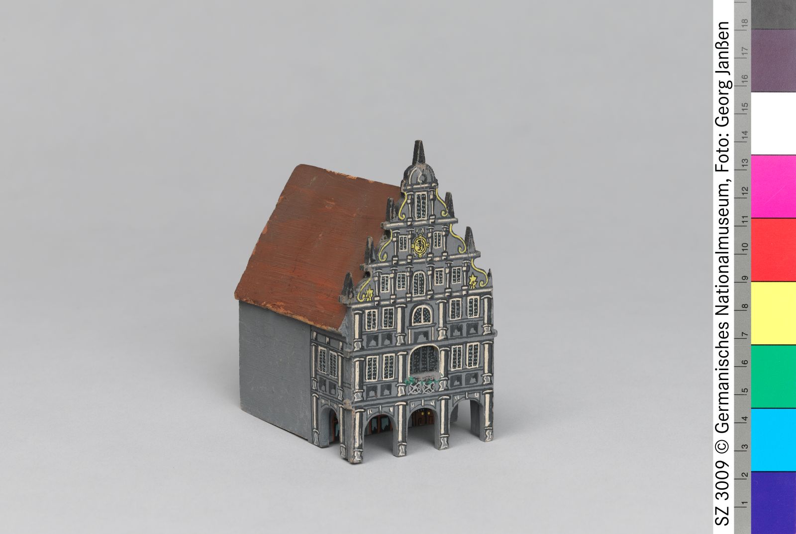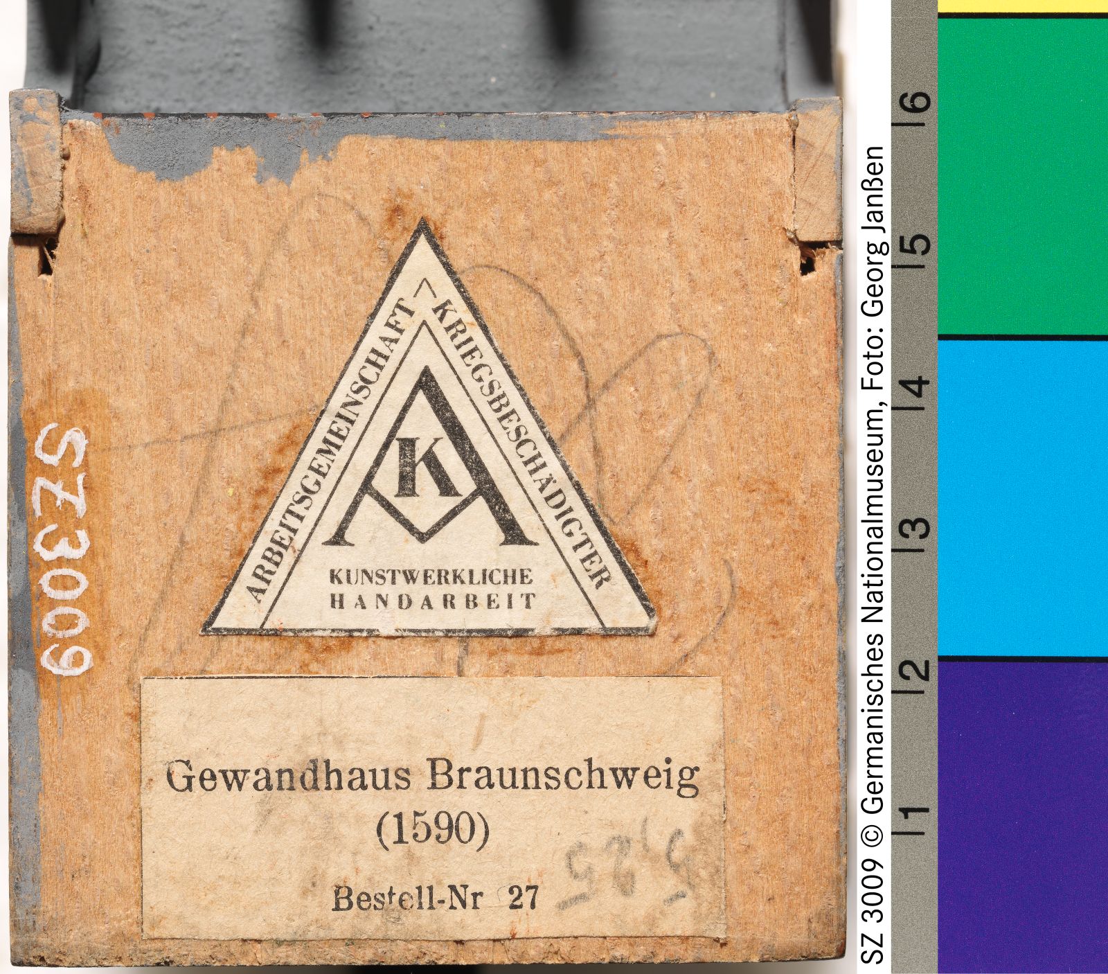 Holz (Buche), gesägt, geleimt, bemalt
