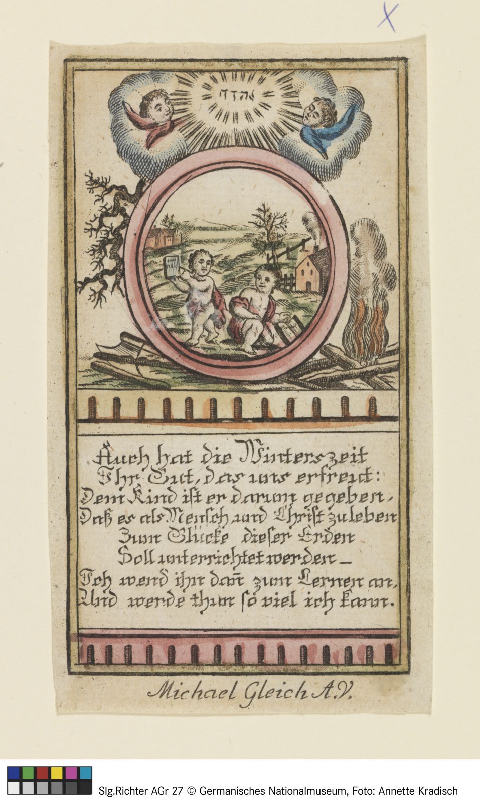 emblematische Darstellung mit zwei Jungen (Fleißbildchen)