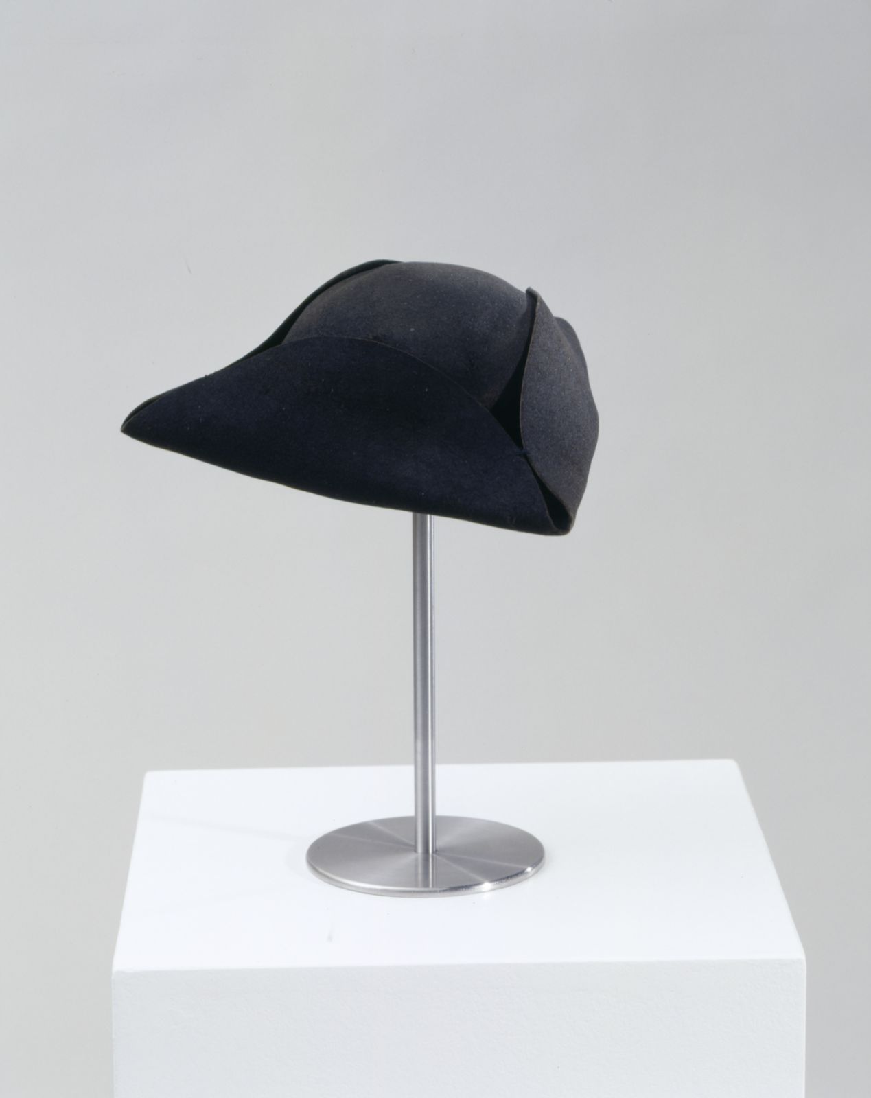 Obermaterial: Wollfilz, schwarz; Futter: Leinen, dunkelbraun. - Gechintzt