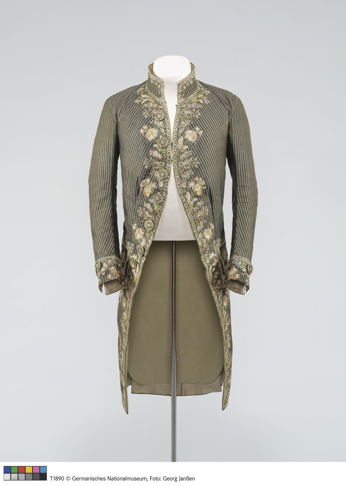 Verzierung 2, Zierknöpfe: insgesamt 22 Knöpfe, davon 6 im vorderen Brustbereich, je 3 unter den Patten, je 3 an den Ärmelaufschlägen, 4 am Rückenschlitz,