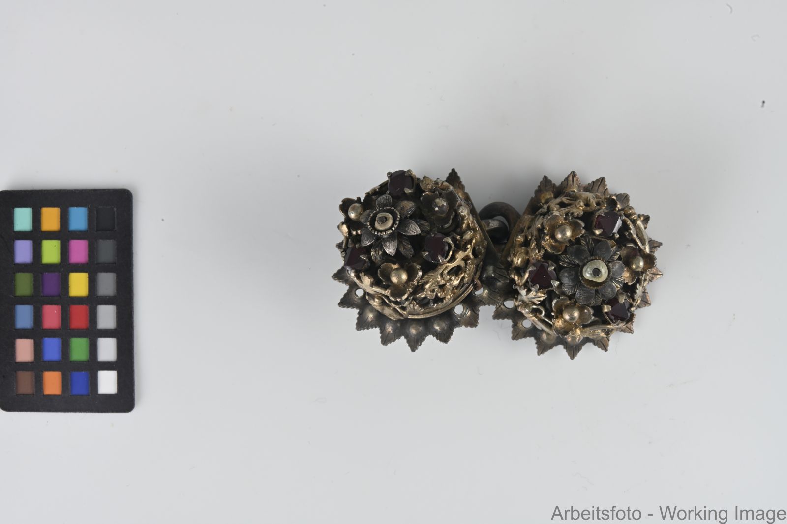 Silber, vergoldet, Granate, echte Perlen