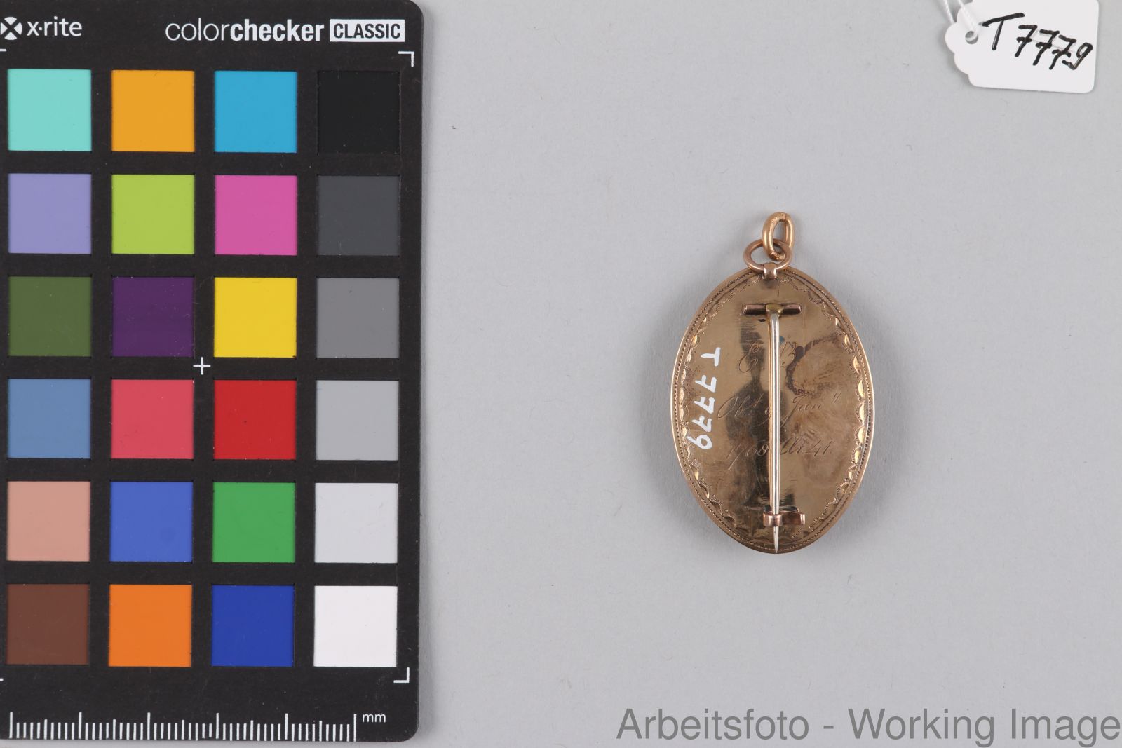 L 5,1 cm (mit Öse), L 4,2 cm; B 3 cm, T 1,1 cm