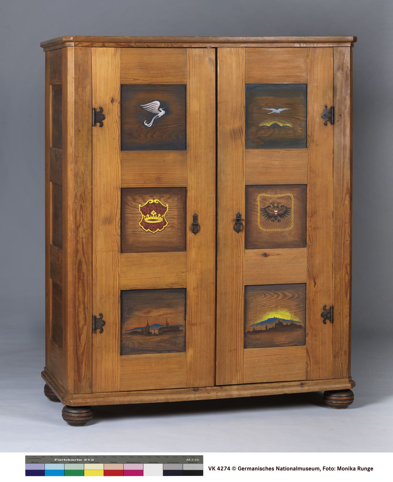 Kiefer, bemalt mit Wasserfarben und Farbstift, Baustahl (Schmiedeeisen)