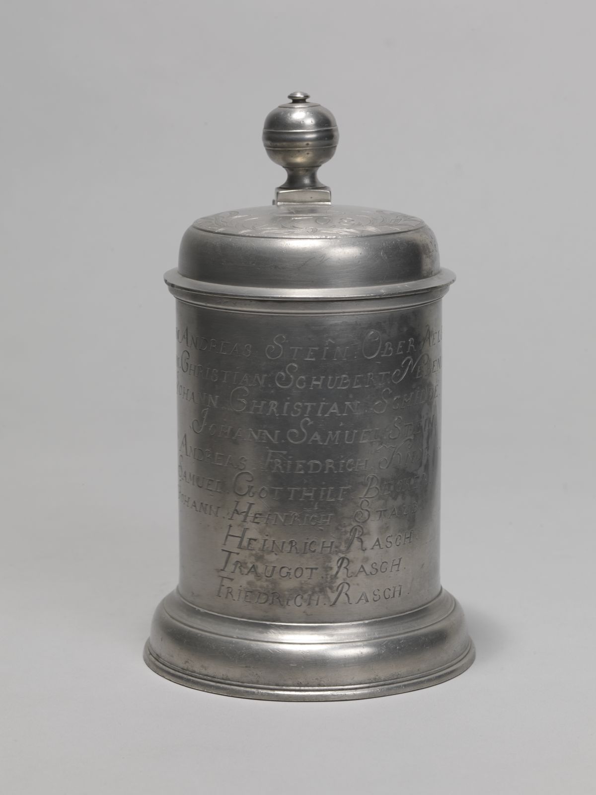 Zinn, gegossen, gelötet, graviert