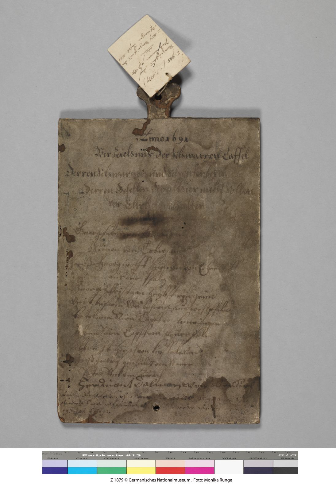 Aushangtafel mit Namensliste der unehrlichen Nürnberger Schwarz- und Schönfärbergesellen