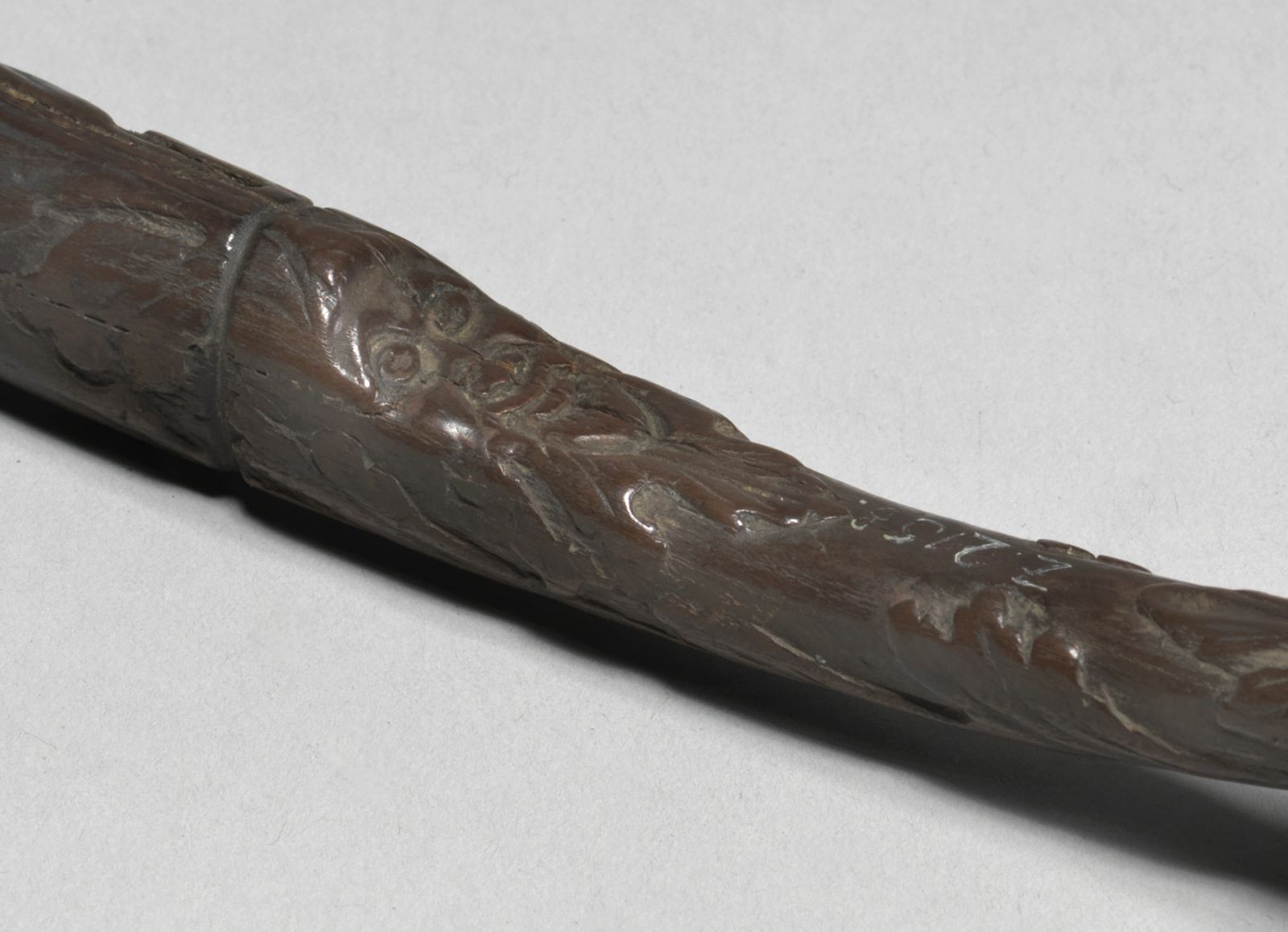 Eisen, geschmiedet, geschliffen; Laubholz, geschnitzt