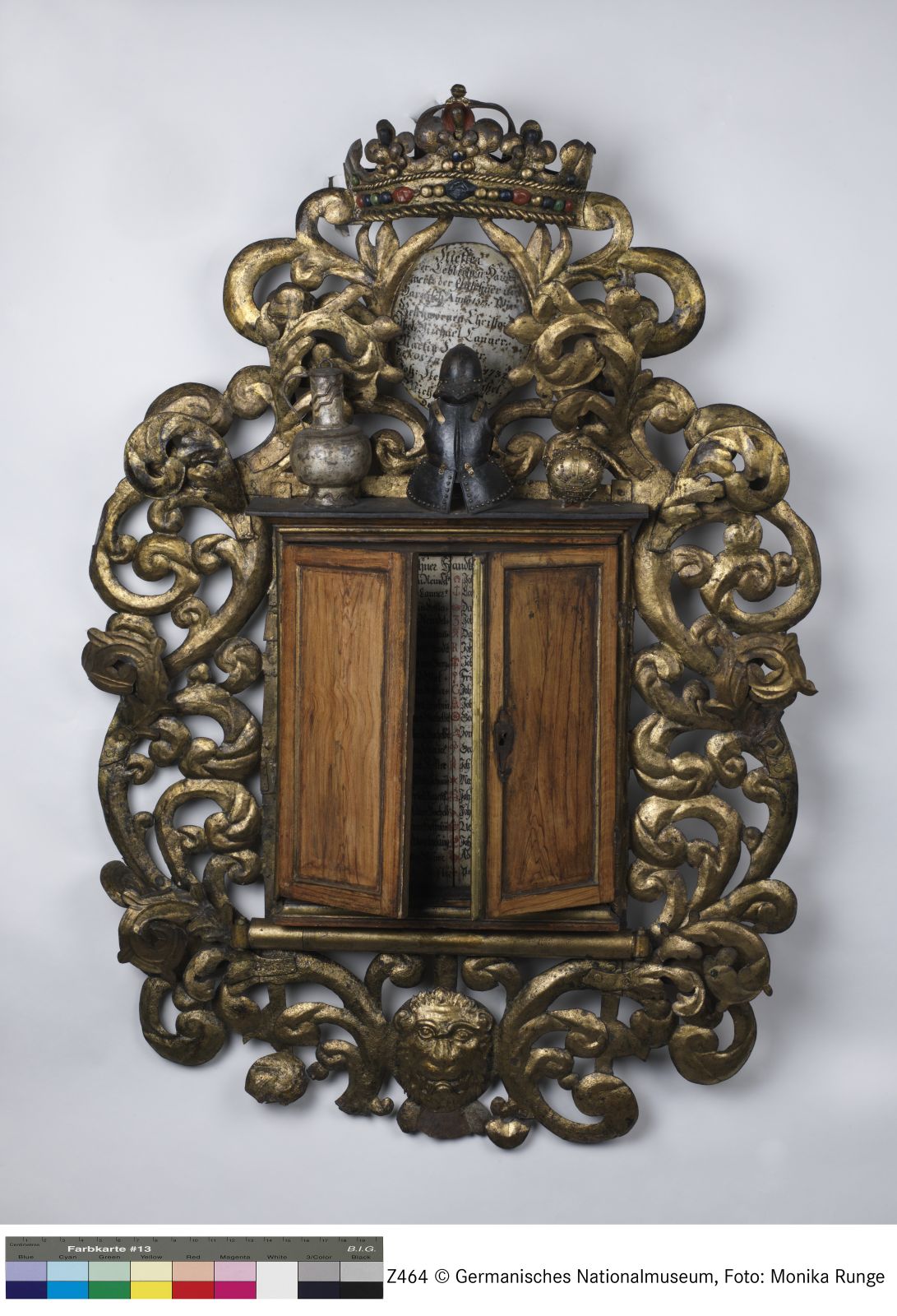Holz, Eisenblech verzinnt, bemalt, vergoldet