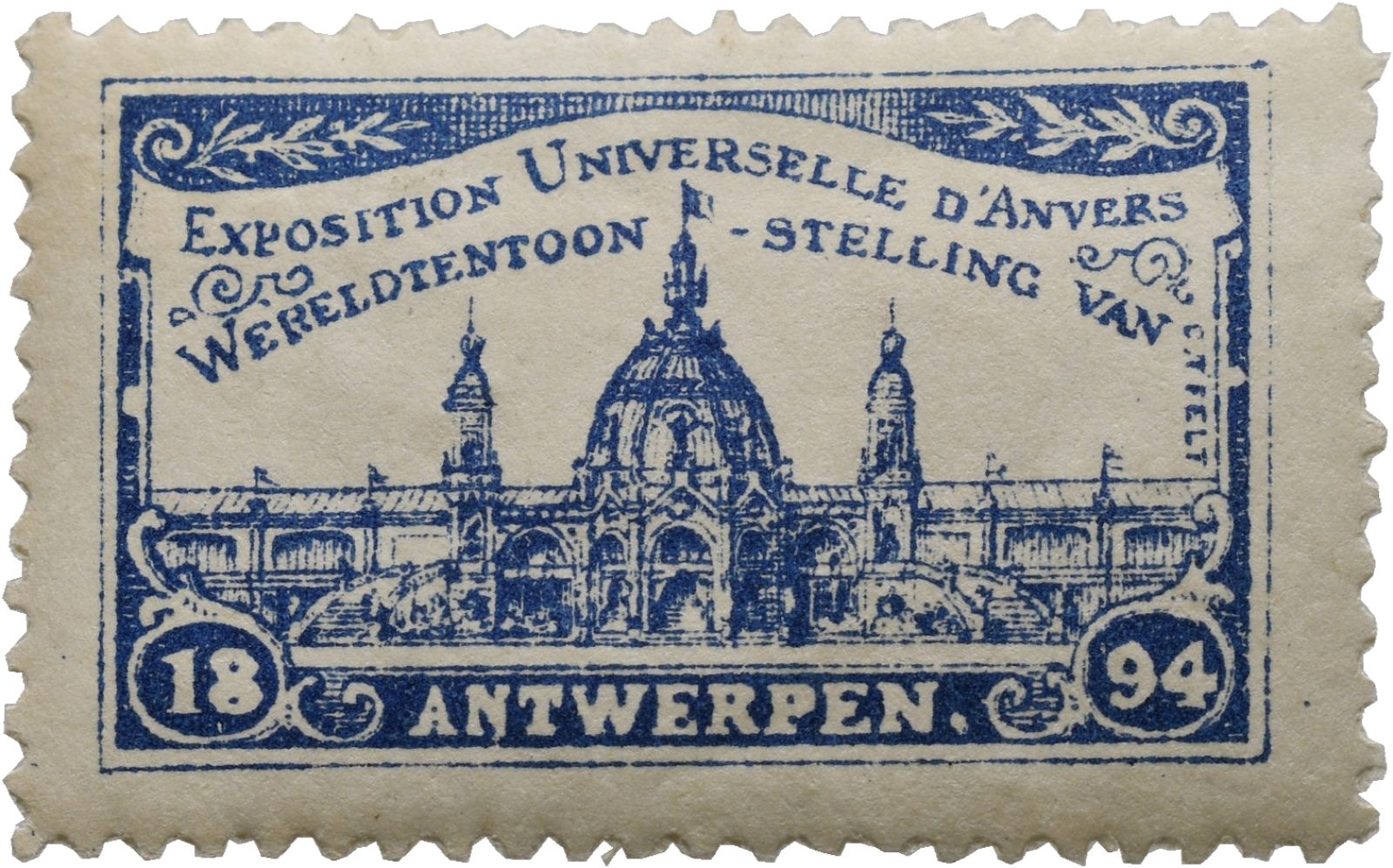 Antwerpen, Weltausstellung, Werbemarke Ausstellungspalast blau 1894