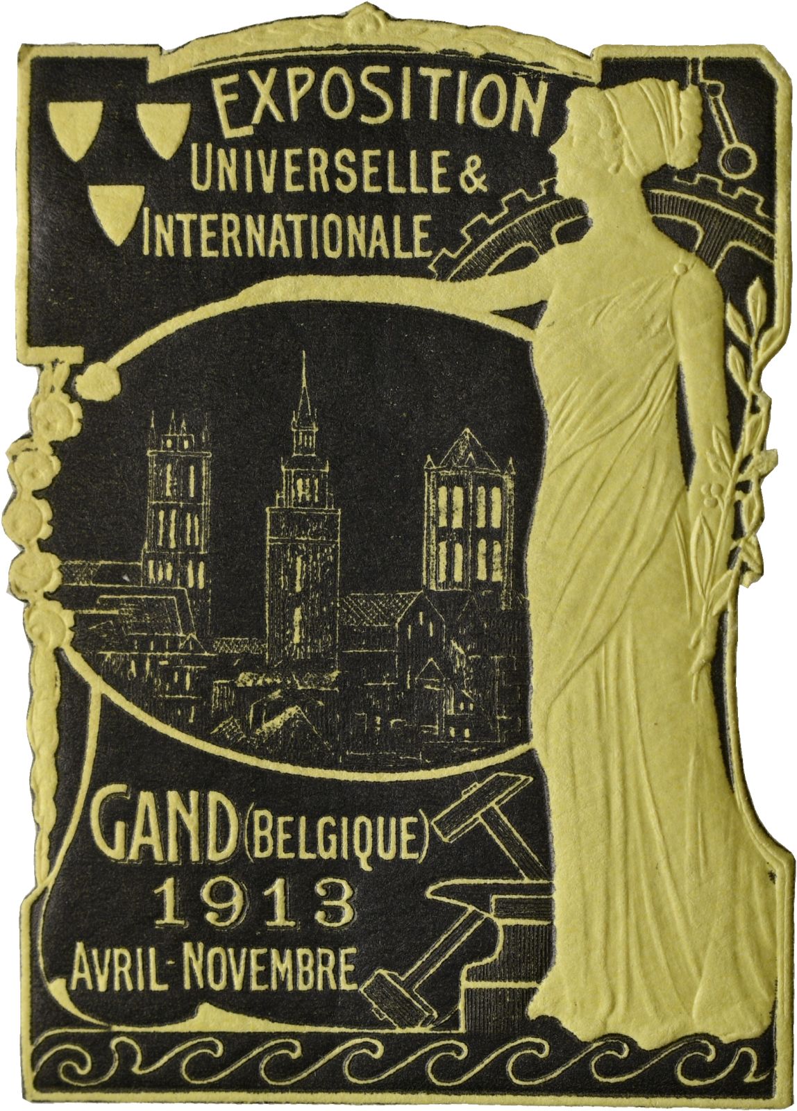 Gent, Weltausstellung, Werbemarke, schwarz-gelb, 1913