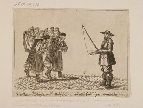 Bauernmägde die Milch und Butter tragen und // ausrufen (HB19180)
