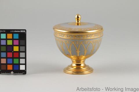Weibliche Figur mit Deckeldose (Zuckerdose) (Ke683)