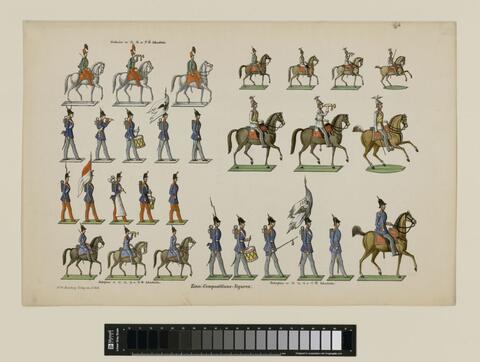 Seite aus einem Musterkatalog für Kinderspielzeug, Blatt // No. 83: Zinn-Compositions-Figuren (HB25783,3)