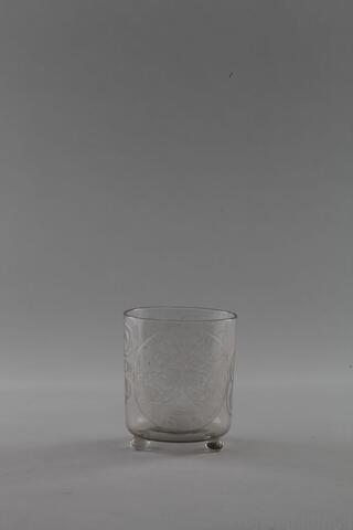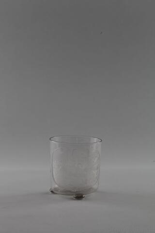 Becher aus Glas mit geschnittenen Darstellungen auf der Wandung (Gl288)