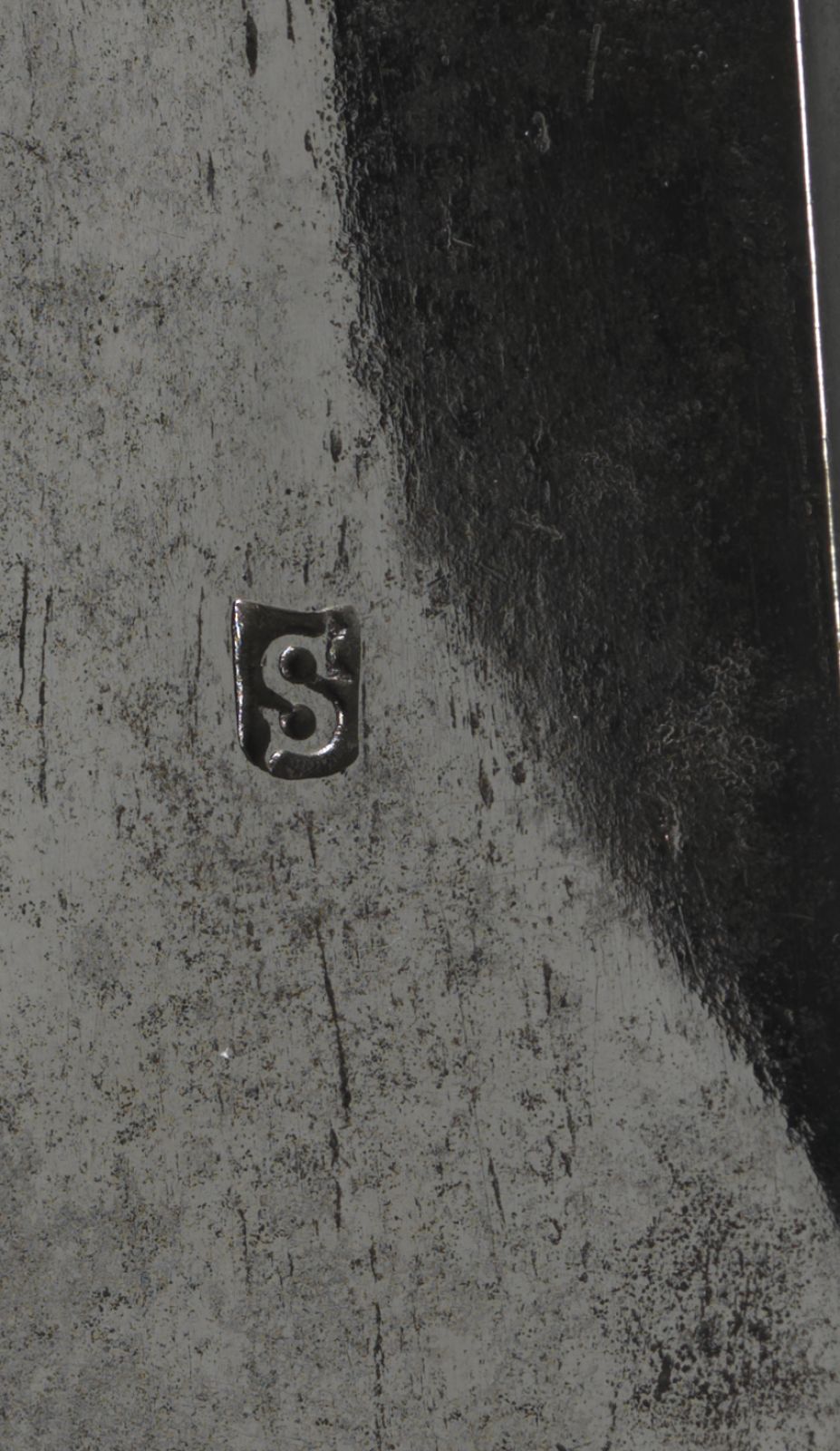 Wappenförmige Kartusche mit Initiale "S" als Herstellerzeichen