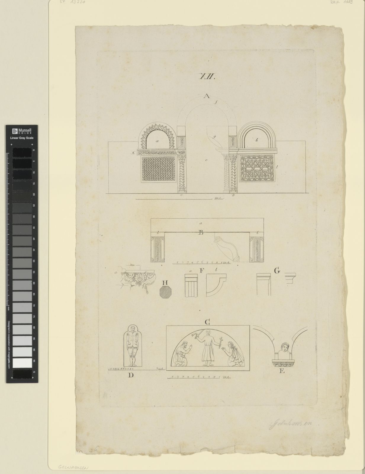 Gelnhausen, Kaiserpfalz, Kamin und Architekturdetails im Aufriss