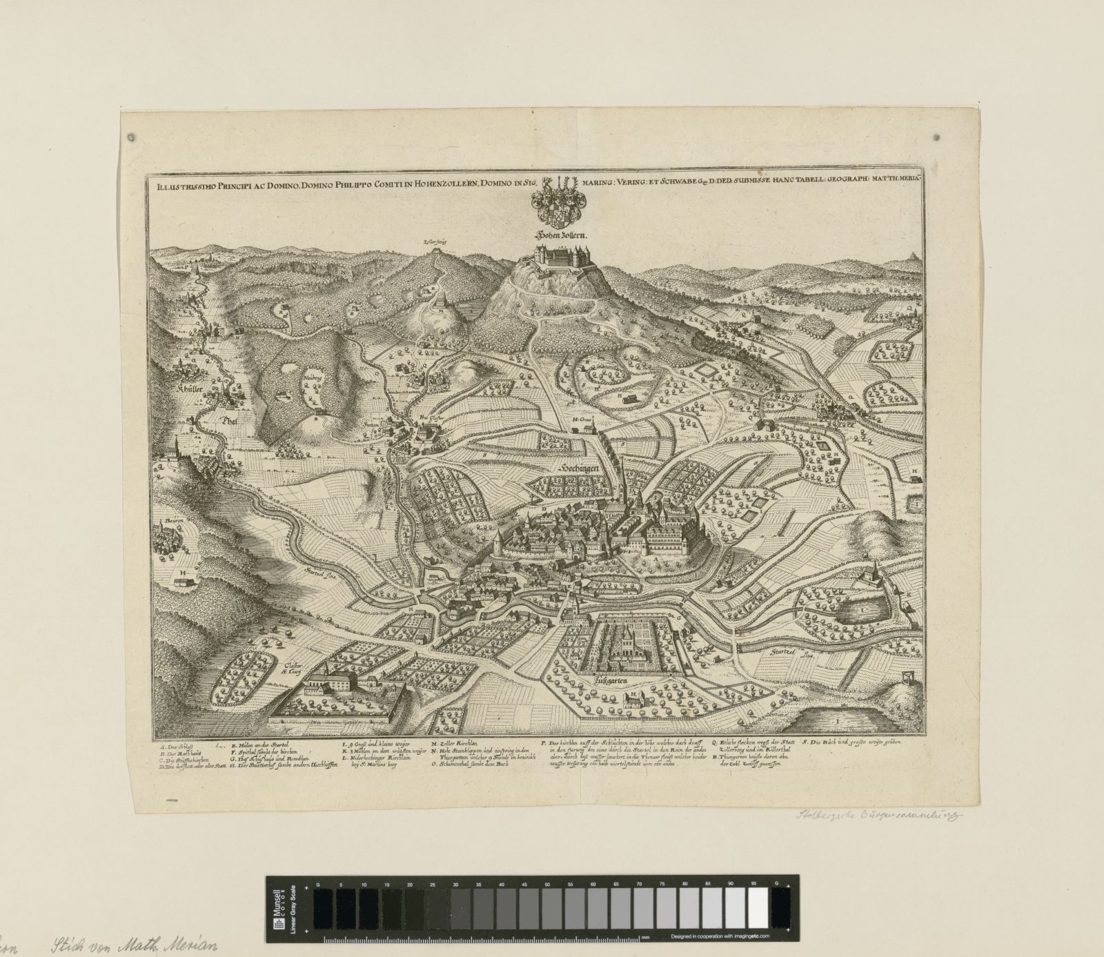 Burg Hohenzollern, Gesamtansicht mit Hechingen und dem Umland